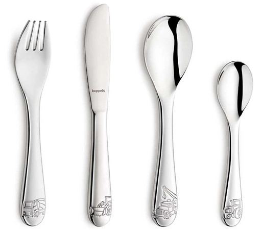 - включва: вилица (17,5 см), нож (19 см), лъжица (17 см) и малка лъжичка (13,4 см)