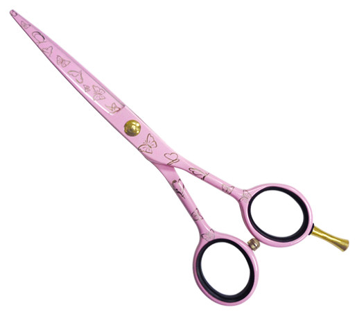 - Фризьорска ножица за подстригване Henbor Butterfly Line Pink, 5.5" / 14 см