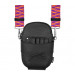 • с регулируема презрамка, с дизайн на лилаво-оранжеви геометрични фигури