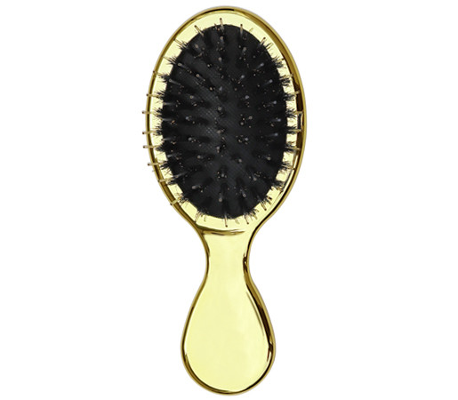 Четка за коса Kadifee Gold Mini, естествен косъм и силиконови щифтове, 14 см