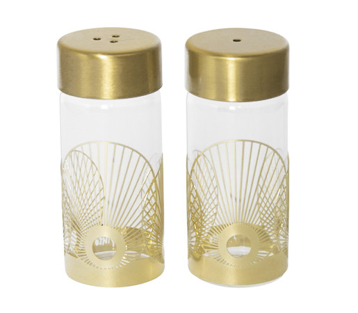 Комплект солница и пиперница Pluto Design Sun Gold, стъкло и метал, 7 x 3 см