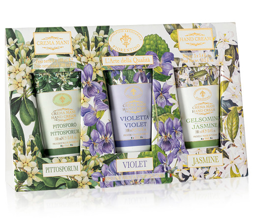 - Крем за ръце Saponificio Artigianale Fiorentino - Pitosforo, Violetta, Gelsomino, комплект 3 x 100 мл